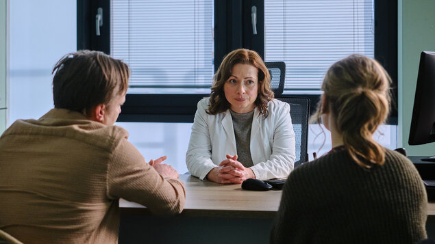 Divák sleduje hlavných hrdinov vo chvíli, keď sa im lámu životy, a je svedkom ich najväčších pochybností, strachov i nádejí. „Je to film o rozhodovaní, o tom, že nič nie je čiernobiele,“ charakterizuje Tanec s medveďom jeho hlavná predstaviteľka Pavla Gajdošíková, ktorá hrá tehotnú huslistku Lindu. Partnerom jej je Kryštof Hádek, ktorý do úlohy Marka vnáša vlastnú rodičovskú skúsenosť a osobnú citlivosť. „Sám som otec, takže som si tým procesom, či bude všetko v poriadku, tiež prešiel. A mám vo svojom okolí postihnuté deti. Mať zdravé dieťa je obrovský dar, nie samozrejmosť,“ hovorí herec, ktorý priznáva, že nakrúcanie v ňom otváralo zásadné otázky. „Nie je vôbec jednoduché stáť pred rozhodnutím, aké zažívajú naše postavy,“ dodáva.
